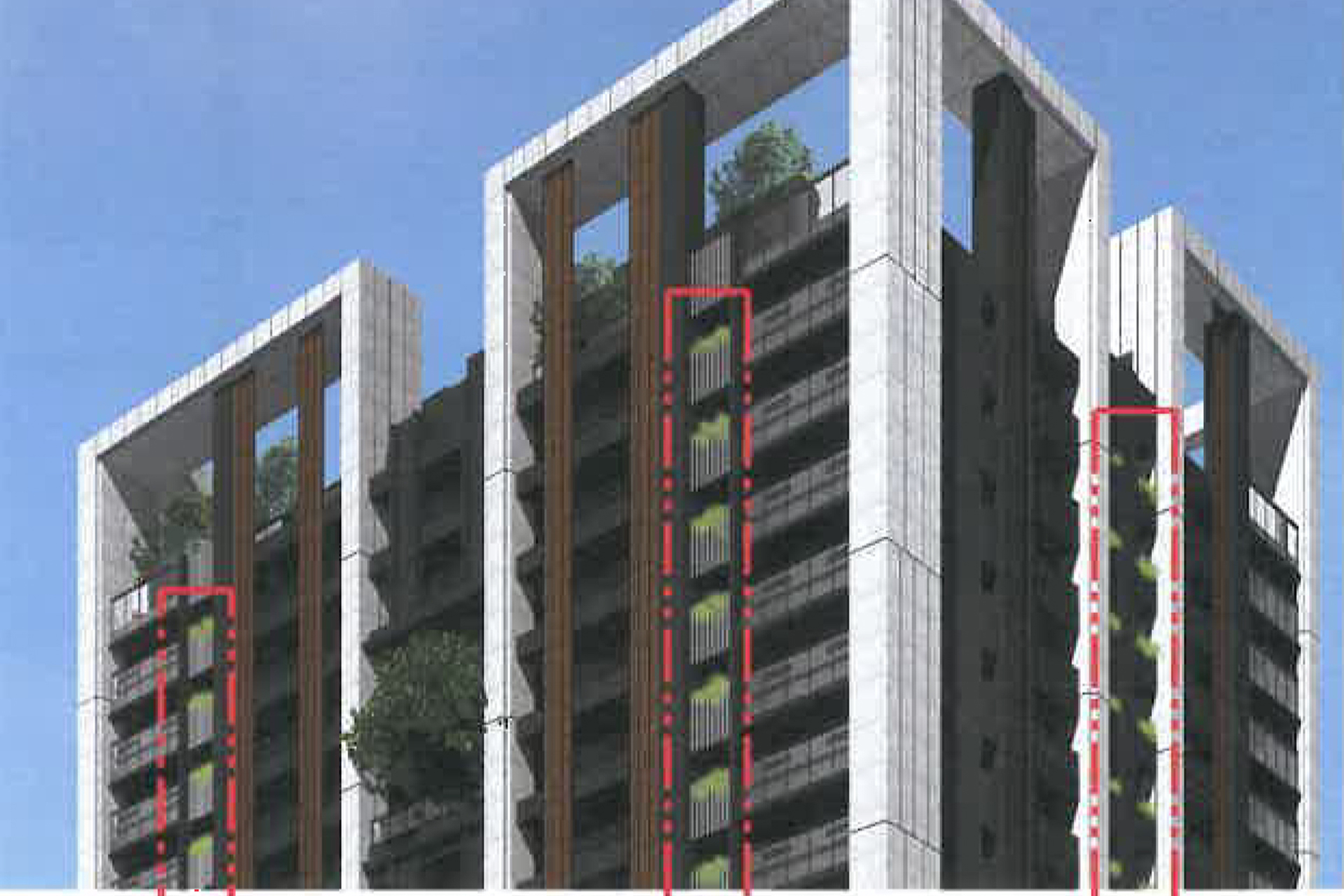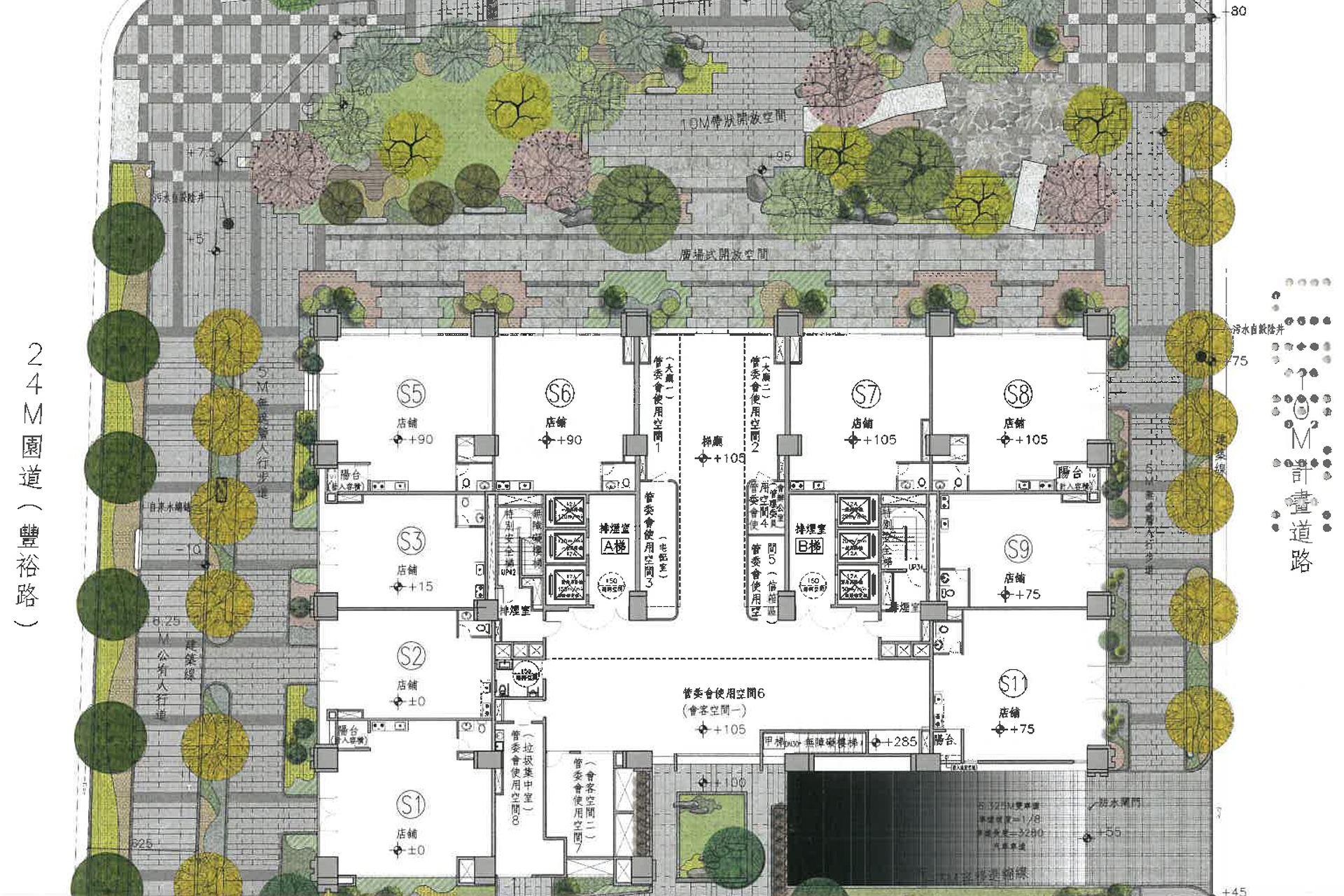 本案位於臺北市中山區,以現代簡約線條與大地色系融合,透過格柵遮陽呈現層次感,外觀照明強化屋突造型。黃金級綠建築,結合綠化、透水鋪面與節能措施,展現環保、節能、永續美學。