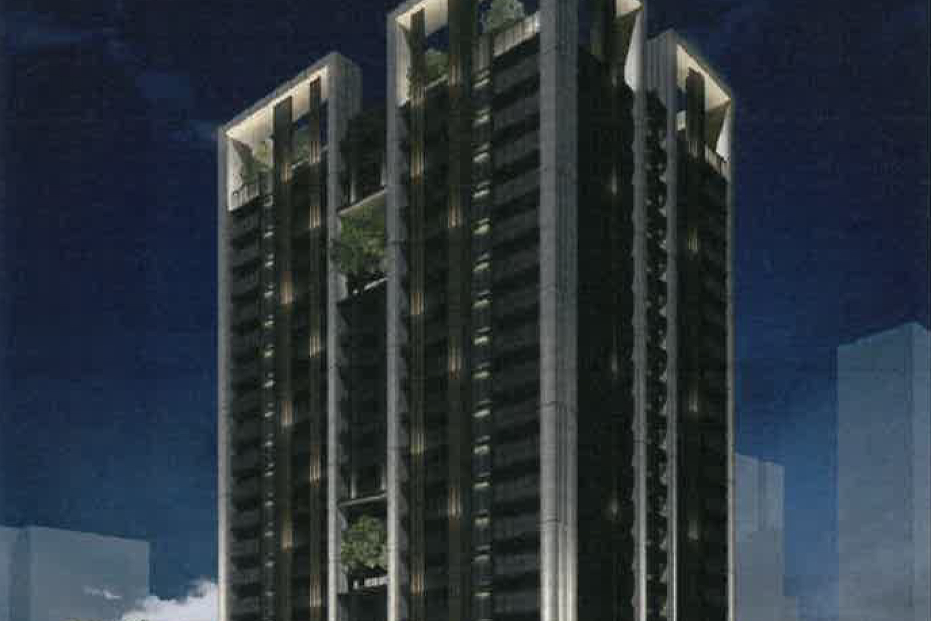 本案位於臺北市中山區,以現代簡約線條與大地色系融合,透過格柵遮陽呈現層次感,外觀照明強化屋突造型。黃金級綠建築,結合綠化、透水鋪面與節能措施,展現環保、節能、永續美學。